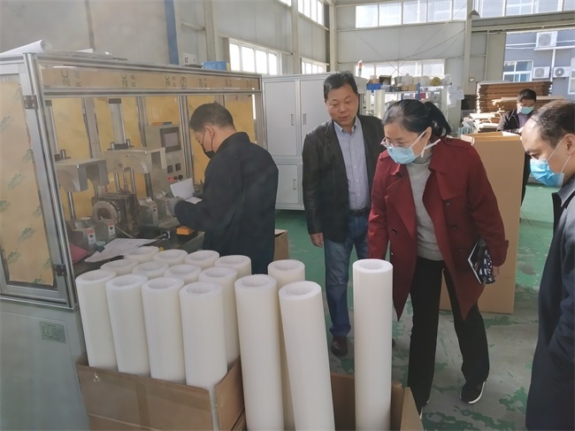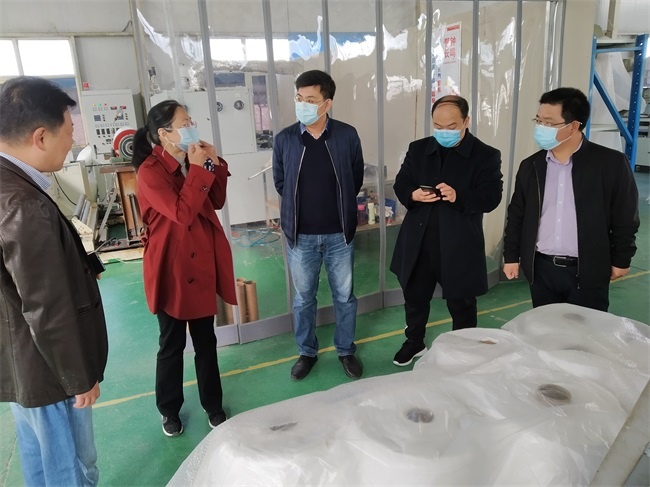 領(lǐng)導在熔噴布生產(chǎn)現(xiàn)場