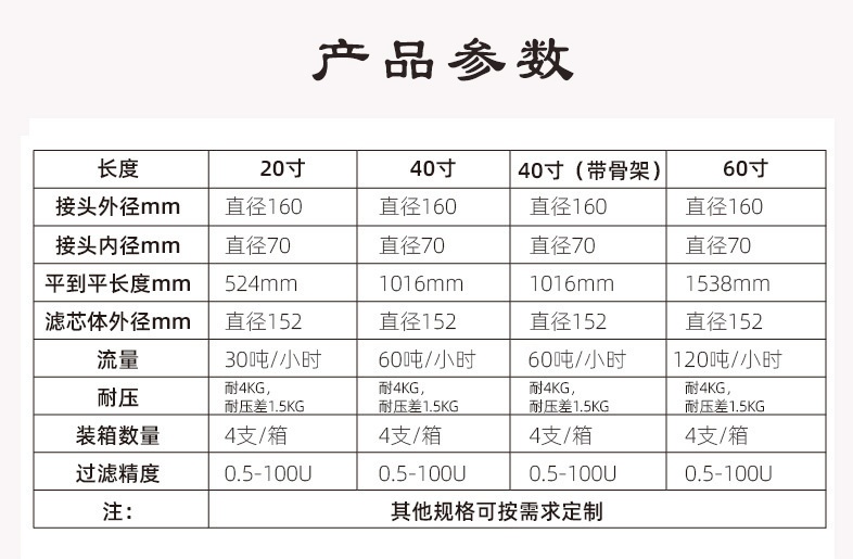 濾芯過濾等級(jí)多樣,1-100um/微米多種選擇