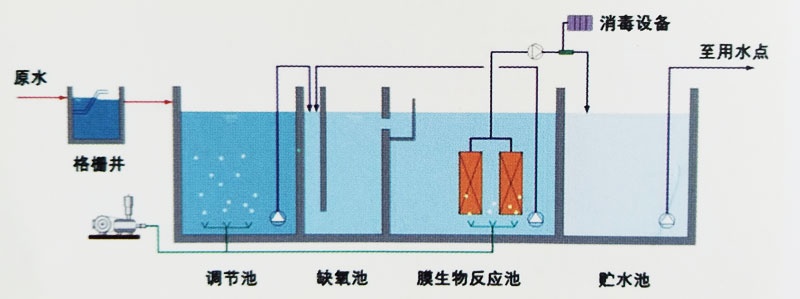 主要有生物反應(yīng)器和膜組件兩個單元設(shè)備組成,運行過程中,污水首先進入到生物反應(yīng)器,污染物在生物反應(yīng)器中被微生物同化或異化,異化產(chǎn)物多為無害的CO?和H?O,同化物質(zhì)為微生物的組成部分;膜組件主要用于截留微生物和過濾出水。